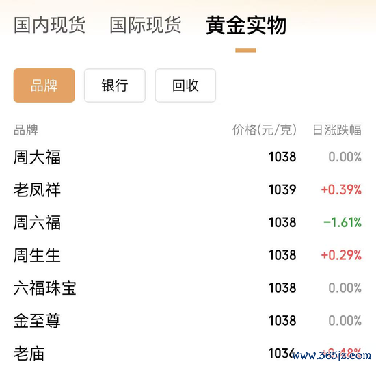 与国际金价回升不同的是,国内金店足金饰品价格暂未有上涨趋势。25日,周大福、周生生等足金饰品价格为1038元/克。